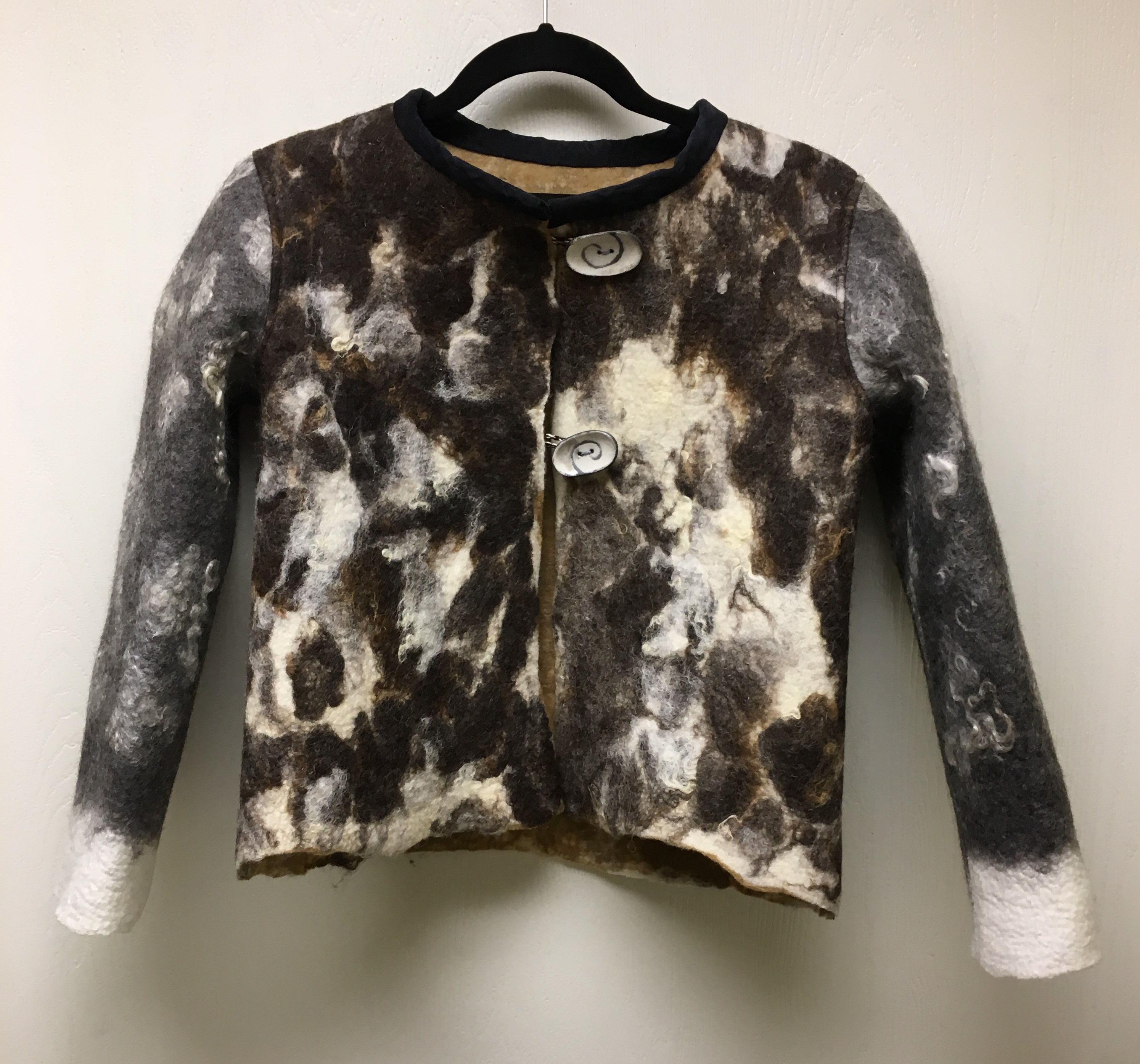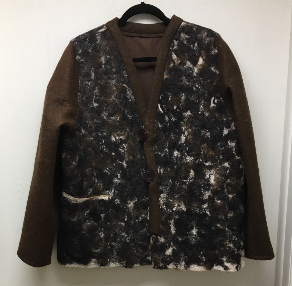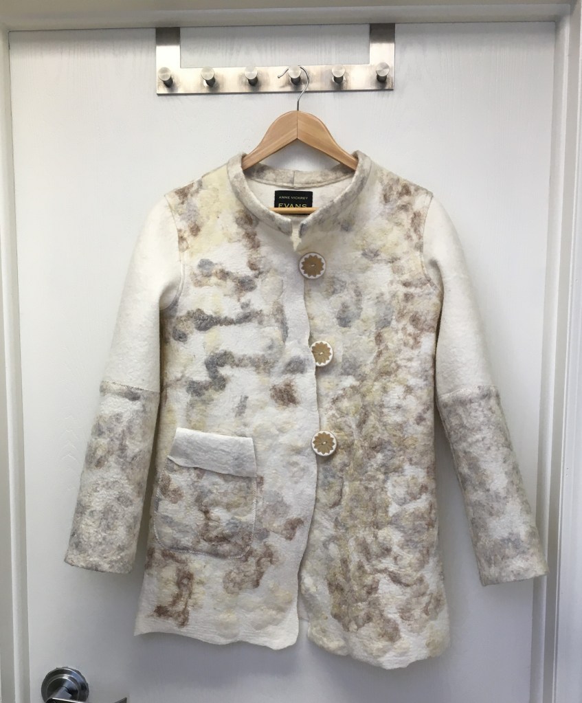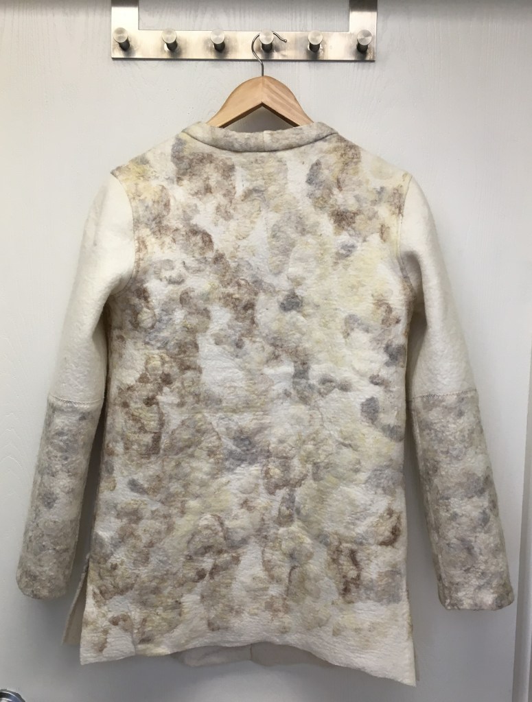 March 2021 – I recently finished a coat that I started on the needle felting machine and finished on the wet felting rolling machine.